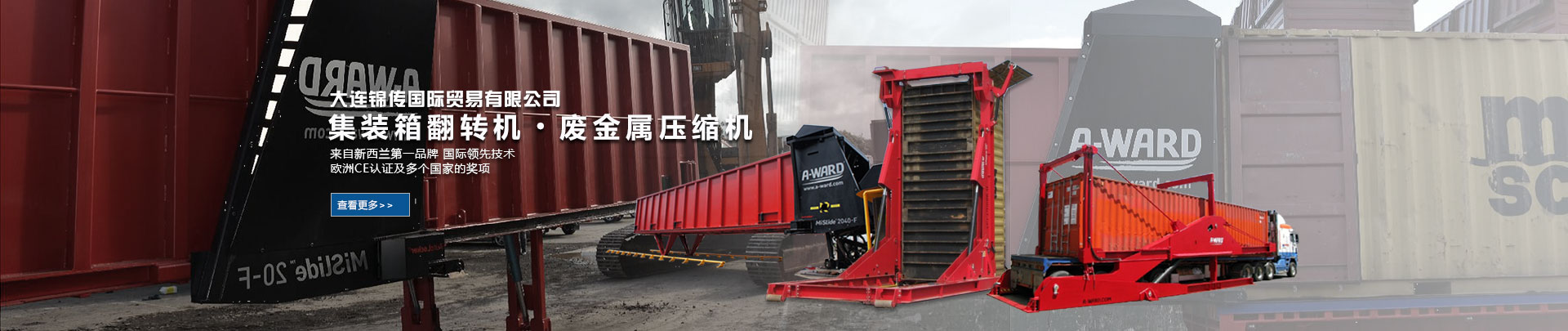 大連錦傳國際貿(mào)易有限公司于2013年11月與新西蘭A Ward公司達(dá)成戰(zhàn)略合作,成功代理集裝箱翻轉(zhuǎn)機(jī)、廢金屬壓縮機(jī)等產(chǎn)品在中國大陸的銷售、維護(hù)及保養(yǎng)業(yè)務(wù)。本公司重合同、守信用,保證產(chǎn)品質(zhì)量,以經(jīng)營多種特色的產(chǎn)品和薄利多銷的原則,贏得了廣大客戶的信任與厚愛。現(xiàn)長期出口產(chǎn)品至澳大利亞,巴西,德國,俄羅斯,哥倫比亞,美國,泰國,羅馬尼亞,新西蘭 ,意大利,越南,印度,印度尼西亞等國家。